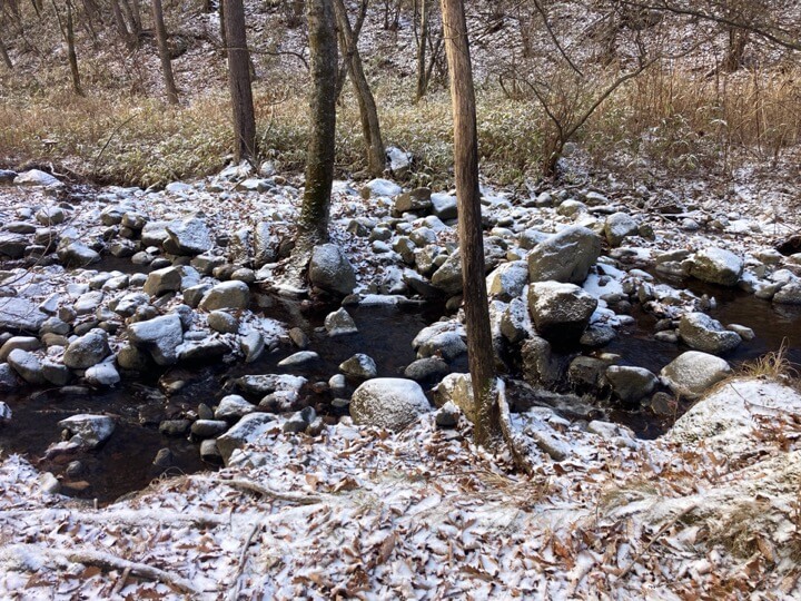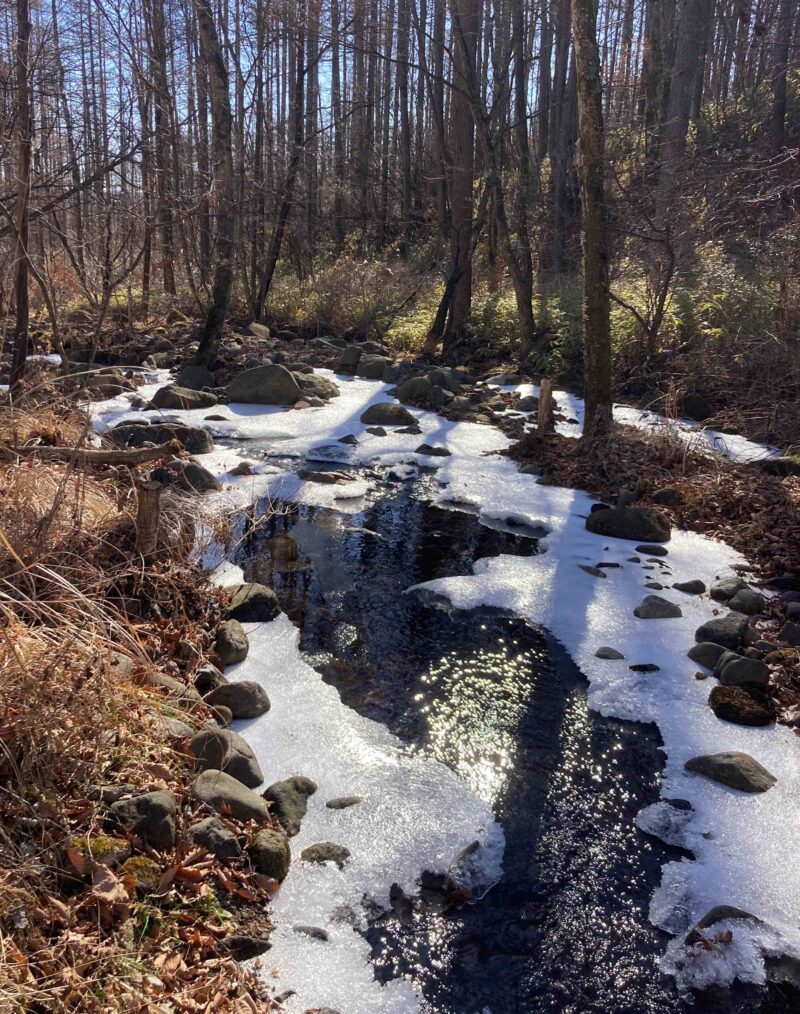 これは本当の雪景色です。栗ノ木沢。なぜか昨日までの氷は溶けていました。