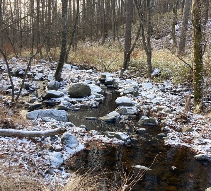 これは本当の雪景色です。栗ノ木沢。なぜか昨日までの氷は溶けていました。