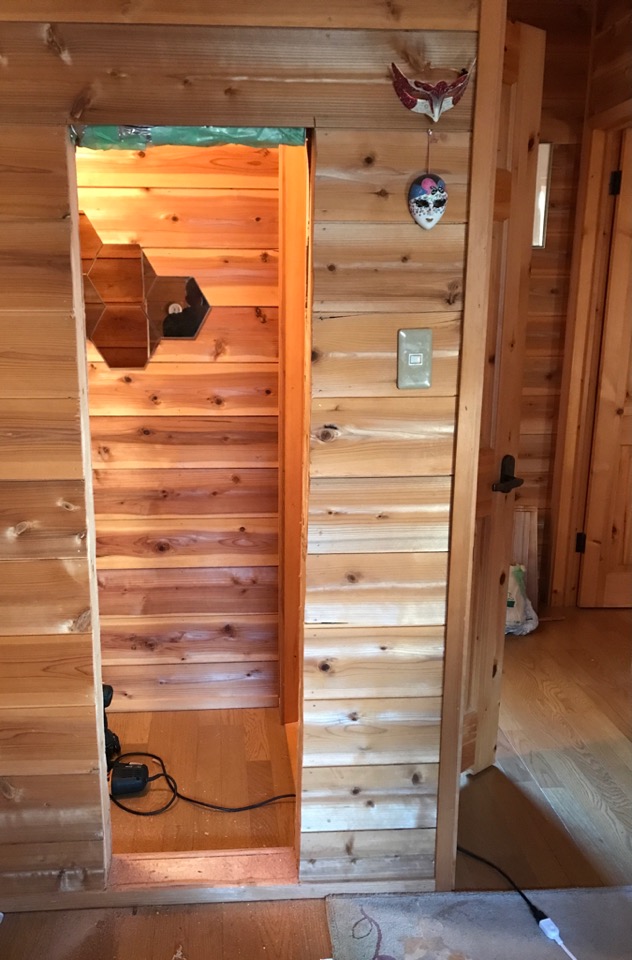 ともかく1月20日の昼には電動ノコギリを持ち出し、トイレと寝室の壁を切り出しました。