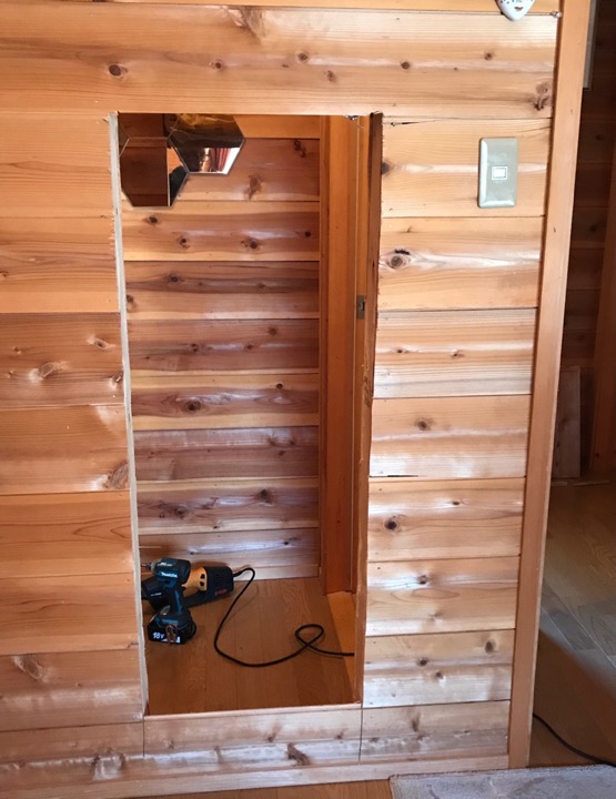 ともかく1月20日の昼には電動ノコギリを持ち出し、トイレと寝室の壁を切り出しました。