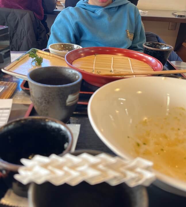 帰るその日のお昼はどうしようかと迷いましたが、以前に行った野辺山のそば屋「最高地点」はこの時期なので最高の混み方と推測しました。あそこで長時間待たされるのは母には相当辛いのです。