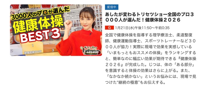 まずは健康 TVの取説ショー(トリセツショー)で「健康体操2026」です。