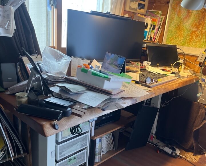 この机の白い脚は電動昇降式なので左のボタンを押せば天板が上下するのですが、この3年ほど動かしたことはありません。