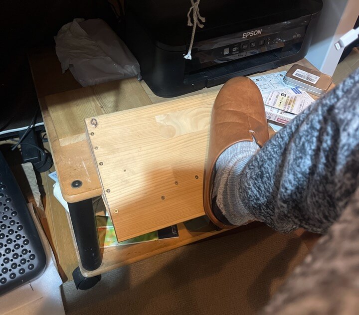 もう何年もプリンター台のへりに足をかけていましたが、なんとも収まりが悪くなんとかできないものかとずっと考えておりました。