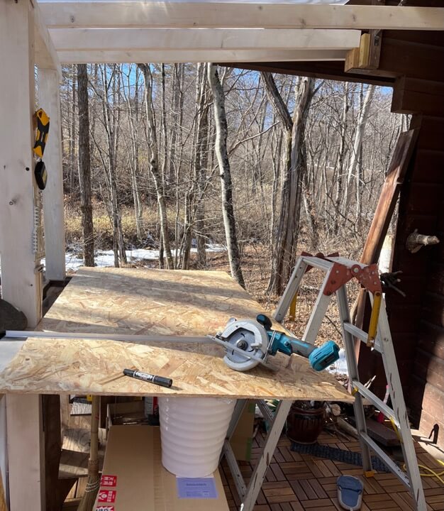 材料は前の工事(ウッドデッキの屋根)の残った端材です。