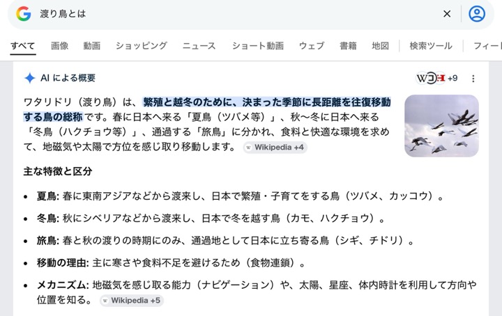 『繁殖や越冬のために』と書くべきじゃあないでしょうか?AIさんよ」