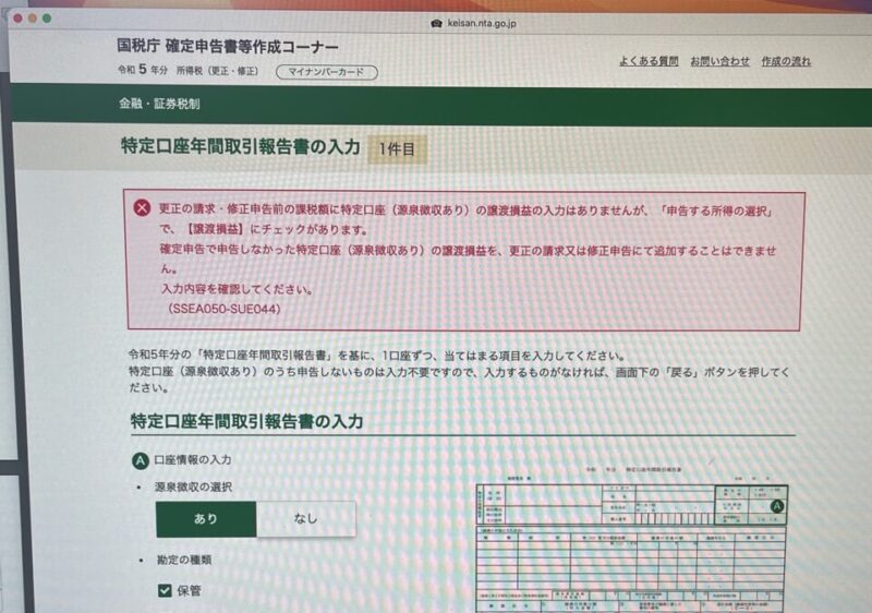 しかし、今回更正処理で控除金額を入力していくと、国税庁のサイトが「控除はできません」とのご宣託が表示されます。おかしい。